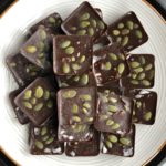 Chocolate fat bombs loaded with hempseeds, pumpkin seeds, unsweetened coconut flakes and red chili flakes.