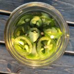 - Slice jalapeños to desired thickness. (Some people use gloves. I don’t. I just don’t touch my eyeballs)