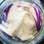 I had a post on making cultured red onions, which boasted all the lovely gut health info so have a read if you like. This post is the same recipe but I did a batch of red onions for eating and a batch of white onions for the purpose of having clear fermenting liquid “juice” on hand for other ferments. We still eat the white onions but they tend to go into things that the lovely purple will make unappealing.
