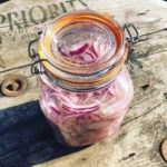 Onions are rich in prebiotic (gut healthy) fibers and fermenting them adds to that a product rich in probiotics. Prebiotics sort of run through your system and don’t account for much in the way of calories but they feed your microbiome (the good bacteria in your gut) to keep you strong and healthy. If you didn’t love onions before now at least you have a basic understanding of their benefits. After fermenting you get the ‘full package’ with these super gut health stars. And they taste pretty amazing as well!