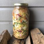 KIMCHI! Kimchi is one of the quintessential ferments. I mean, most people actually know about kimchi even if they haven’t tasted it so that is miles ahead of most other cultured foods. I had planned on making a closer version to Michelle Tam’s but then we had TWO bouts of flu sandwiching our Thanksgiving. No joke. One of the close to cold variety and the other of the nasty stomach virus variety… spread out over a week. We dropped like monkeys off a bed. One at a time. Kids in school. What do they do lick each other’s faces? I dunno. It’s nasty though. By the time I felt well enough to throw this together half the veg was dead and I had a pile of jalapeños to deal with as well. That and I am curious and almost never follow a recipe. I never even wrote down a recipe until about a decade ago when a friend asked me to write them down in a book for her before I moved country once again.